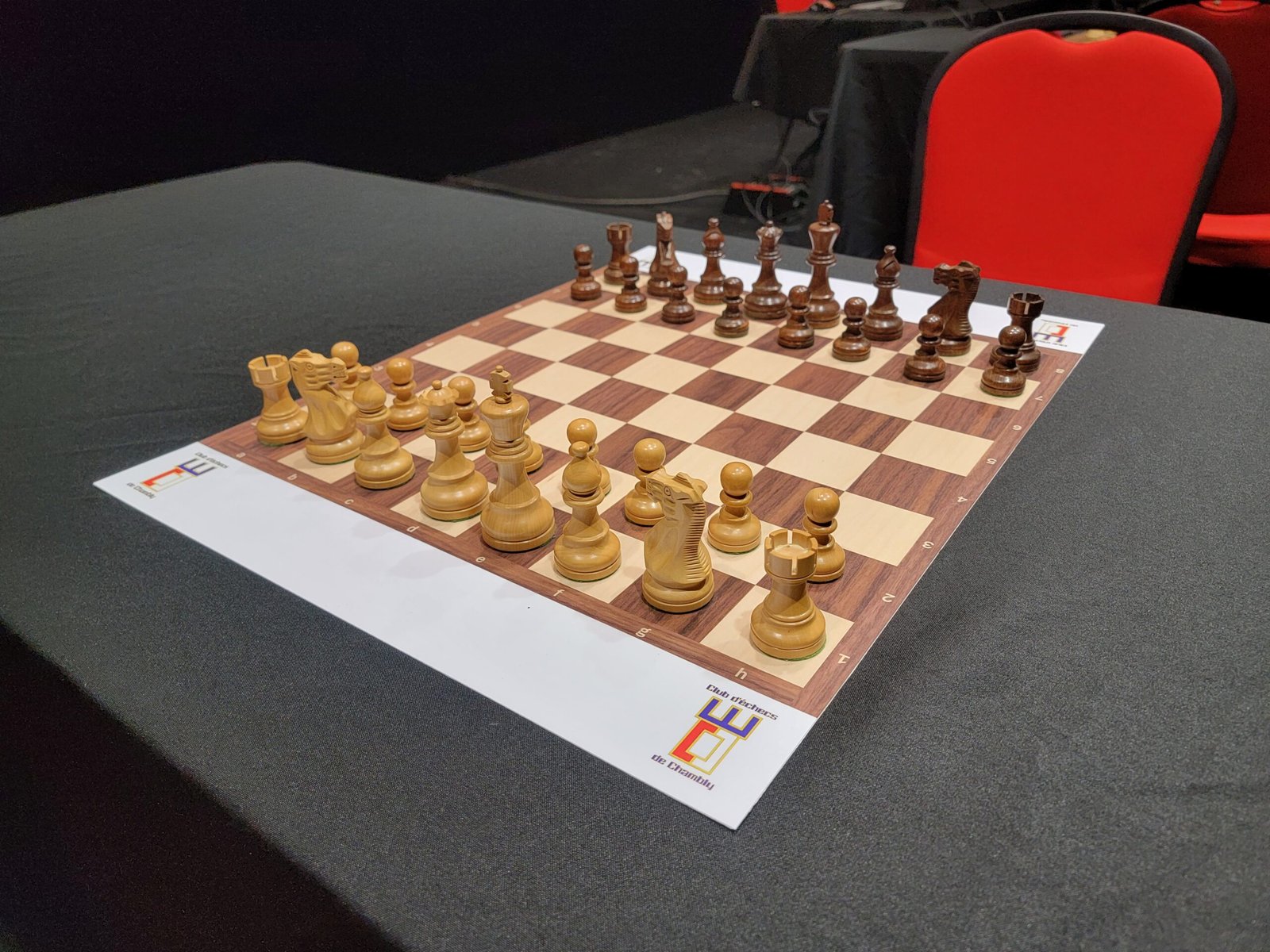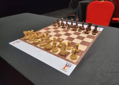 Nos parties se jouent sur des échiquiers personnalisés de grande qualité, offrant une expérience de jeu élégante et particulièrement agréable.